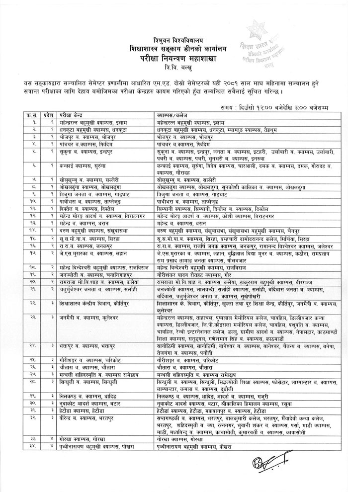 Exam Center for M.Ed. Second Semester-2081 pdfImportant Guidelines of Notice :